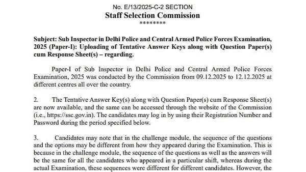 SSC CPO Paper 1 Answer Key OUT At ssc.gov.in; Objections Open Till December 27