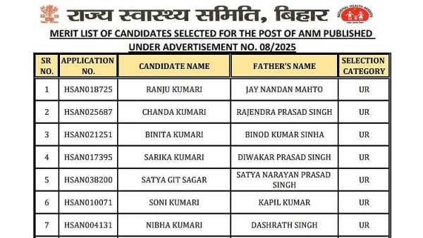Bihar SHS ANM Merit List 2026 Declared At shs.bihar.gov.in: Here's How To Check Results