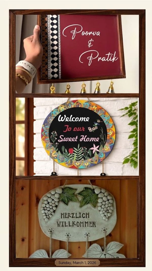 Name Plate Designs: Install these 8 stylish name plates outside the house, enhance the beauty of the house. Name Plate Designs For Home Handmade Wooden Round Boho Krishna Inspired Name Plates Ideas