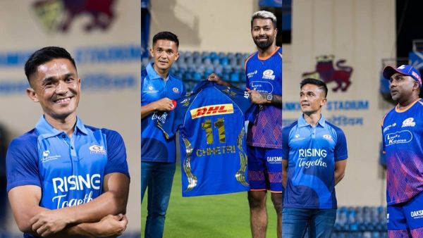 Sunil Chhetri Joins Mumbai Indians Training Session At Wankhede, Skipper Hardik Pandya Gifts MI Jersey To Indian Football Icon