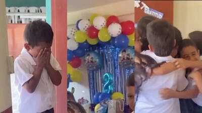 8-year-old boy celebrates birthday for the first time; classmates' surprise leaves him in tears