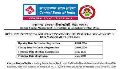 Central Bank of India Recruitment 2026 for Specialist Officers in Risk Management