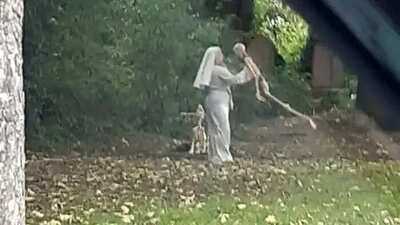 Woman Dances with Skeletons in Abandoned Cemetery in England