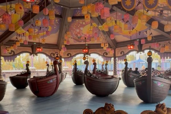 With all the excitement around the World of Frozen, the new Tangled ride was a little overshadowed, but it's a great one for younger kids. On Raiponce Tangled Spin, you gently float around on spinning boats under lanterns, and its the perfect ride for younger kids.