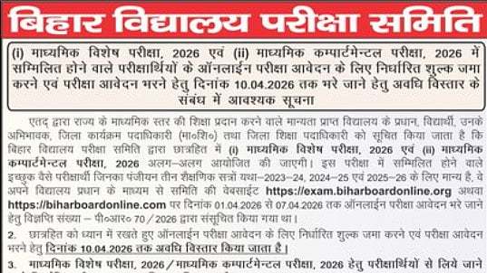 BSEB Once Again Extends Inter Special, Compartment Exam 2026 Application Deadline Till April 10 At intermediate.biharboardonline.com; Check Details Here