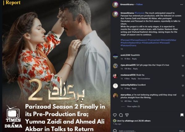 According to the latest reports from Pakistani entertainment circles, a sequel to the critically acclaimed drama Parizaad is confirmed and currently in early stages of development. The much-loved on-screen pair of Yumna Zaidi and Ahmed Ali Akbar, who played Quratulain and Parizaad respectively, are reportedly in talks to return.