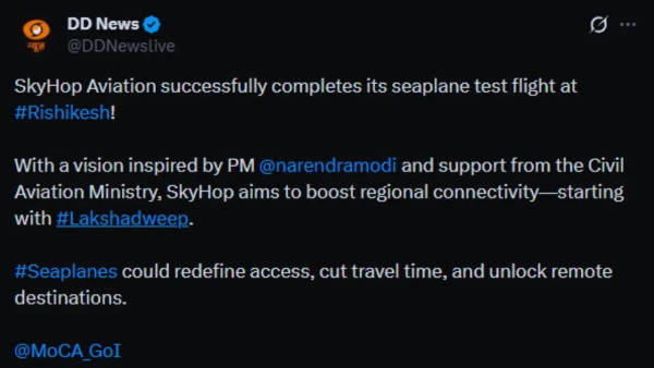 India’s ambitions to introduce commercial seaplane services have taken a significant step forward, with SkyHop Aviation successfully completing a crucial test flight in Uttarakhand. As per a post by DD News (@DDNewsLive) on X, the aircraft carried out both landing and take-off operations from the Ganga Barrage in Rishikesh on April 6, marking a key milestone in the company’s roadmap toward launching passenger services. The post reads, “SkyHop Aviation successfully completes its seaplane test flight at #Rishikesh! With a vision inspired by PM @narendramodi and support from the Civil Aviation Ministry, SkyHop aims to boost regional connectivity—starting with #Lakshadweep. #Seaplanes could redefine access, cut travel time, and unlock remote destinations.”