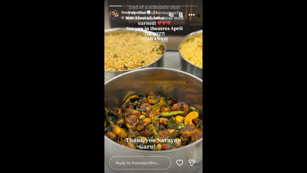 Prithviraj Sukumaran enjoys feast after hard workPrithviraj Sukumaran took to his Instagram handle to share that he has completed a part of the film and is rewarding himself with a well-deserved treat. He shared a picture of his meal and wrote, “End of a schedule that I have worked immensely hard for. Cheat meal well earned. See you in theatres, April 7, 2027. #Varanasi.”