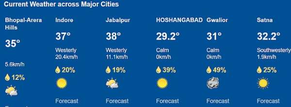 Across Madhya Pradesh, heatwave conditions remain widespread, with Narmadapuram recording a high of 43°C, among the highest in the state.