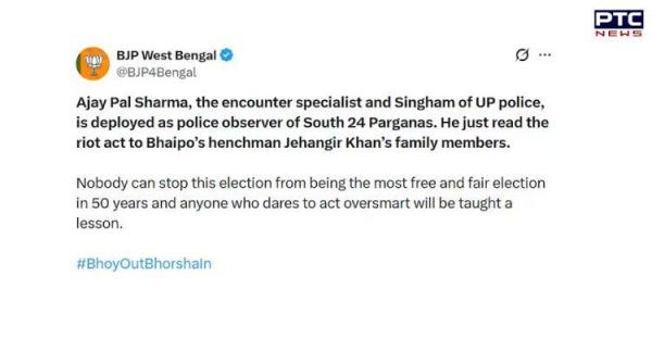 PTC Web Desk: The high-stakes West Bengal Assembly elections have taken a dramatic turn with the entry of Punjab-born IPS officer Ajay Pal Sharma, popularly dubbed Uttar Pradesh’s ‘Singham’, into the politically sensitive South 24 Parganas district. His appointment as an Election Commission observer has triggered a fresh political flashpoint, intensifying tensions between the ruling TMC and the BJP.