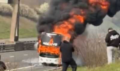 Coach on fire on M6 as Man City fans face travel chaos hours before Carabao Cup final
