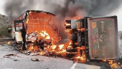 14 killed as bus catches fire after colliding with tipper truck in Andhra Pradesh