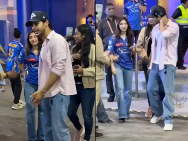 Dhurandhar's Sara Arjun spotted with Homebound actor Ishaan Khatter after MI vs KKR IPL match at Wankhede