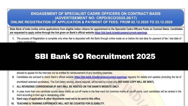 SBI Bank SO Recruitment 2025: Registration Process For 1042 Specialist Officer Vacancy Starts; Check Details Here