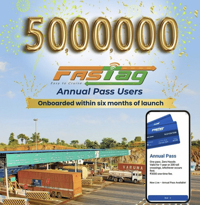 FASTag Annual Pass surpasses 50 lakh users, Chandigarh leads in terms of usage: Govt