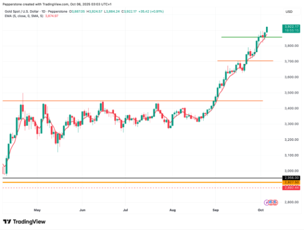 Gold Outlook: Bulls Break Above USD 3,900 as U.S. Government Shutdown Unfolds