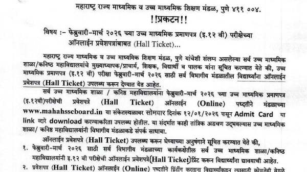 Maharashtra HSC Admit Card 2026 Released At mahahsscboard.in; Exams Begin February 10