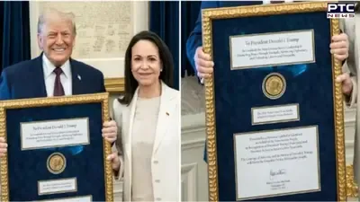 Venezuelan Nobel Peace Prize winner Maria Corina Machado presents medal to Donald Trump