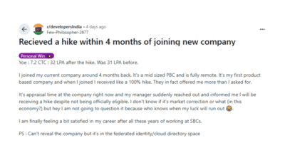 Techie joins new company with 100% hike, gets appraisal in 4 months