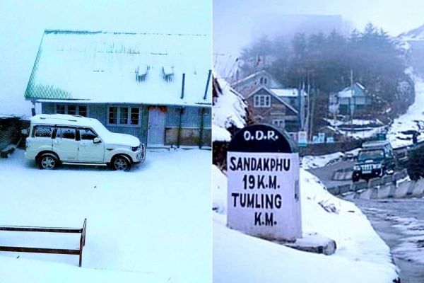 The temperature has dropped! Excited tourists in Sandakphu-Manebhanjan, Darjeeling covered in snow at noon