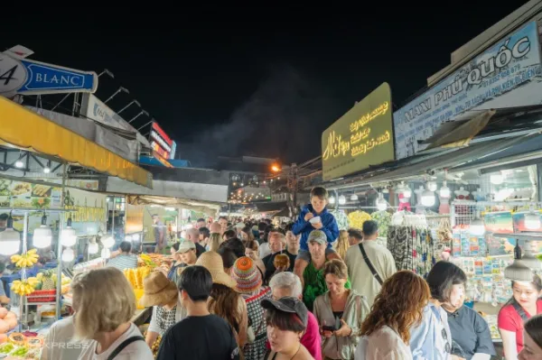Phu Quoc night market flooded with foreign tourists before closure