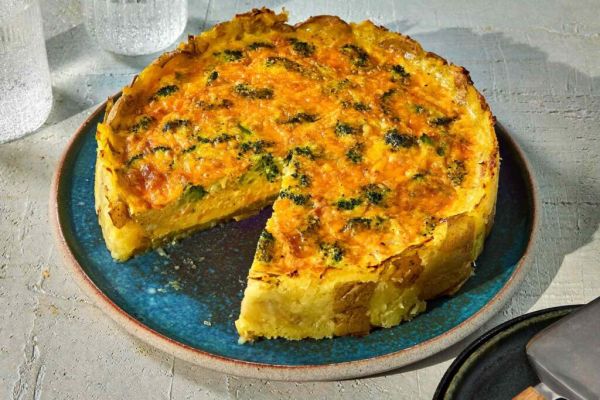 Broccoli Cheddar Potato Crust Quiche Recipe