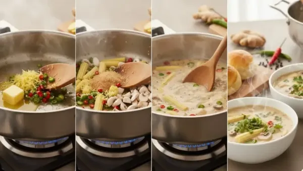 Mushroom and Babycorn Ginger Soup, a wonderful combination of heat and flavour.
