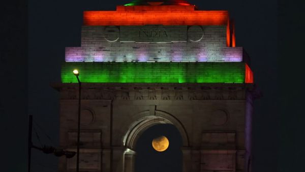 Exciting view of the first lunar eclipse of 2026, see blood moon seen like this from India Gate. A View Of The Moon At The Top Of Jagannath Puri Temple Chandra Grahan 2026