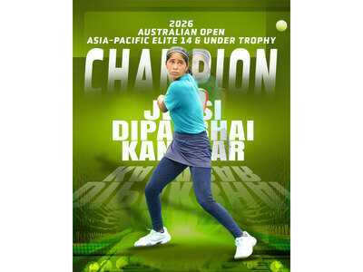 Union Minister Mansukh Mandaviya congratulates Jensi Kanabar for winning Australian Open Asia-Pacific Elite 14 and Under Trophy