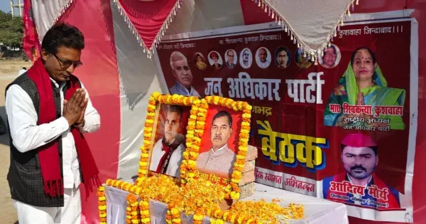 Chanting workers paid tribute to social worker Laxman Singh Maurya and Vijay Singh Gaur.