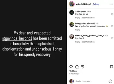Bollywood star Govinda admitted to CritiCare Hospital following sudden loss of consciousness at residence