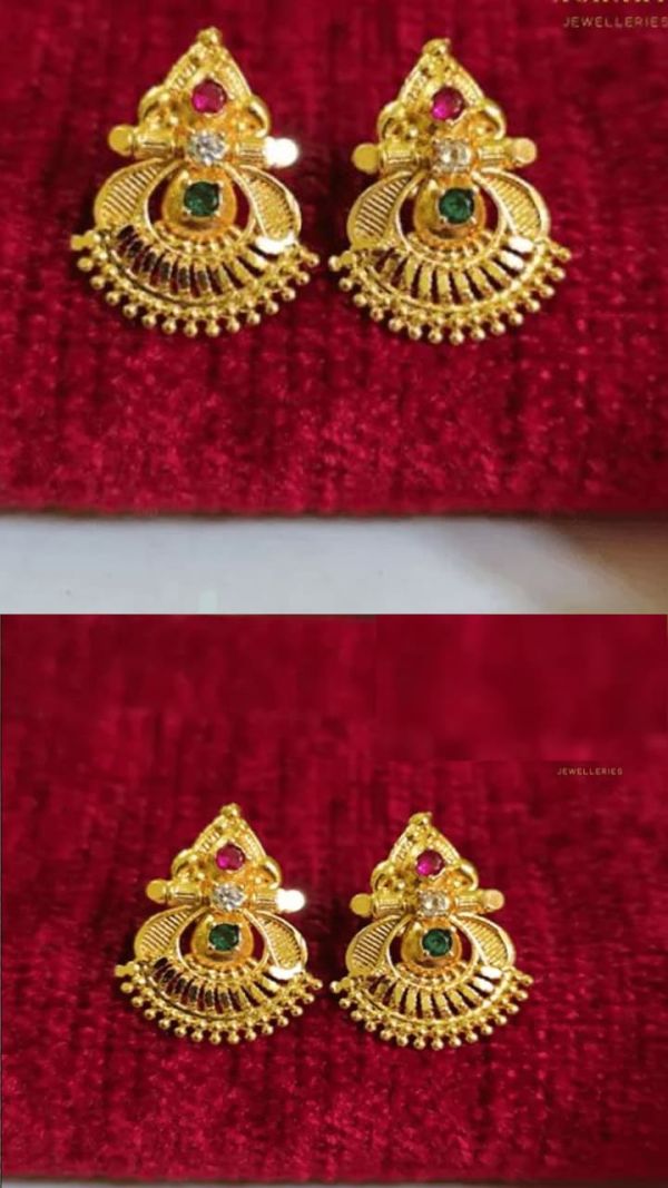 Real Gold Earrings: A glimpse of fashion in tradition, 7 gold tops Jhala designs. 22kt Gold Earrings Tops New Design For Daughter In Law