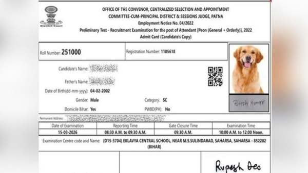 Bihar Court Recruitment Exam Blunder: Four-Year Wait Ends In Shock As Dog Photo Appears On Job Aspirant’s Admit Card