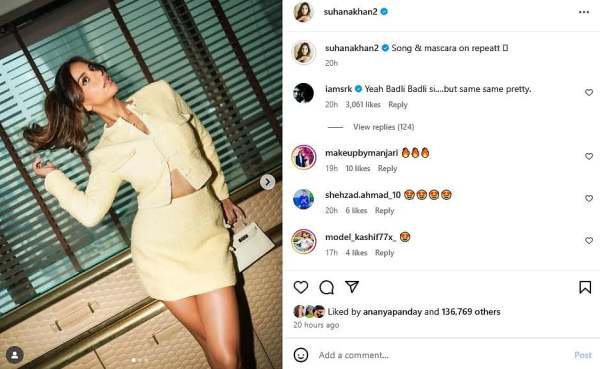 Bollywood superstar Shah Rukh Khan recently responded to a post by his daughter, Suhana Khan.