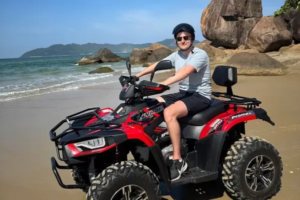 Just a short stroll from my room sits a golden two-mile private beach with no soul in sight. But the thought of walking its length doesn’t entice me after my 18-hour journey, so I instead hop on a quad bike that’s on offer.