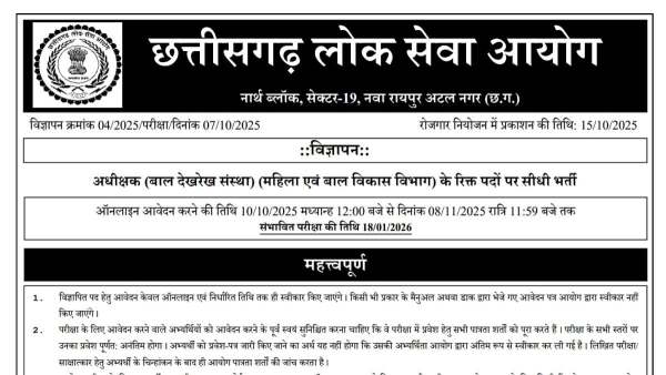 CGPSC Superintendent Notification 2025 Released; Check Details Here