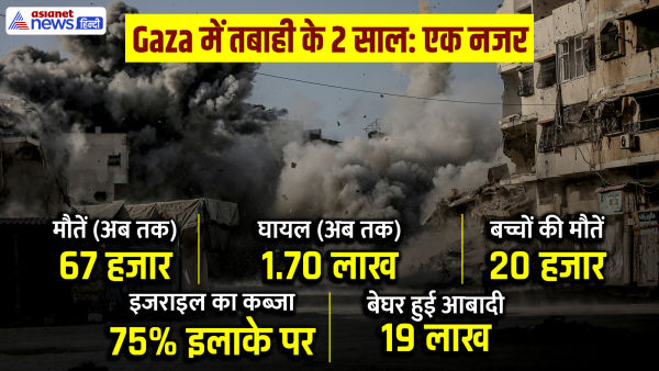 Israel has changed the map of Gaza in the last two years. It is now occupied in 75 percent of the area. Also, more than 75% of the city buildings have been made debris. In the last two years, 67 thousand people have lost their lives, while more than 1.70 lakh are injured. Those who died include at least 20 thousand children. 90% of the city's schools have become ruins.