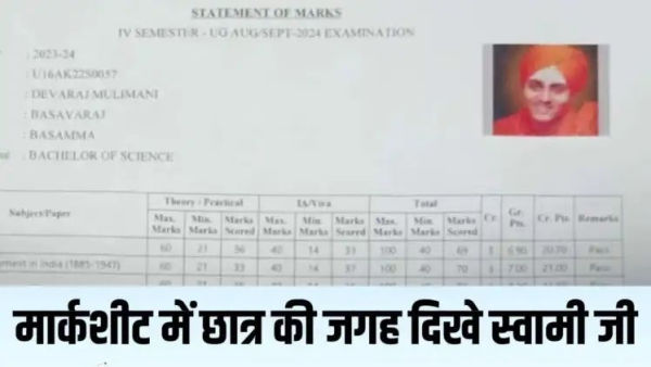 A case of a photo of a Swamiji has come to light in the marksheet of a student studying at Vijayanagar Shri Krishnadevaraya University of Koppal. A student named Devraj Mulimani created a ruckus after seeing this marksheet. This whole case is related to the Commerce of Gavisiddheshwar Arts and Science Department in Kopal under Vijayanagar Shri Krishnadevaraya University. Devraj applied for online marksheet through integrated university and college management system.