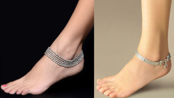Layered chain anklets are in trend these days. Unlike traditional designs, in this type of anklet a plain chain of silver is made in several layers. This design looks great on modern women. Apart from saree-suit, you can also try this pattern of anklets with jeans or skirt.