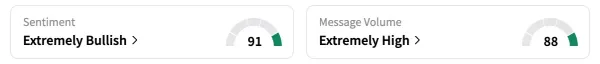 On Stocktwits, retail sentiment for POET stock climbed even higher in the 'extremely bullish' zone (91/100) from a day ago, while message volume jumped to 'extremely high' from 'high' the previous day. POET was the third top-trending ticker at the time of writing.