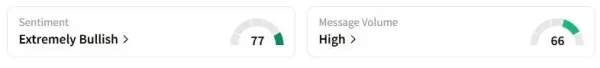 Michael Saylor’s Strategy, which pioneered the concept of crypto treasuries, also fell 8.7%, tracking a decline of the apex cryptocurrency. Retail sentiment on Stocktwits about Strategy was still in the ‘bullish’ territory at the time of writing, while traders were ‘extremely bullish’ about Bitcoin.