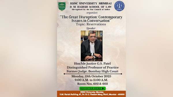 HSNC University’s D.M. Harish School Of Law Launches 'The Great Disruption' Series With Justice Gautam Patel, Professor Of Practice