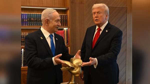 Israeli PM Netanyahu Gifts A Golden Peace Dove To Trump After Gaza Truce