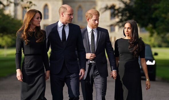 Various royal watchers have noted that Prince Harry is stepping in the right direction when it comes to reconciling with his father, King Charles, in the future. However, the same can't be said about his wife's relationship with her royal relatives. Body language Judi James has now commented on a key moment in 2022, during the walkabout in Windsor after Queen Elizabeth's death, which highlighted the depth of the Sussex rift with the royals. It was then that Princess Kate chose to distance herself from Meghan and even "went into self-preservation mode," according to Ms James.