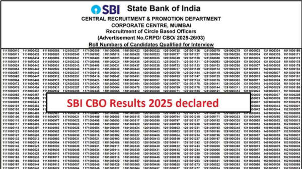 SBI CBO Results 2025: SBI CBO Result Declared, Download Merit List of Shortlisted Candidates for Interview..