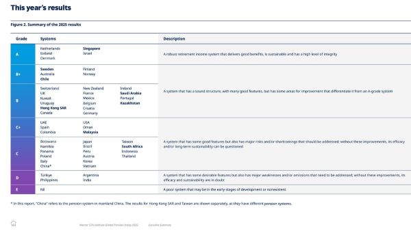 The Mercer CFA Institute Global Pension Index assesses retirement systems based on three core pillars: adequacy, sustainability, and integrity. These pillars carry respective weights of 40 per cent, 35 per cent, and 25 per cent.