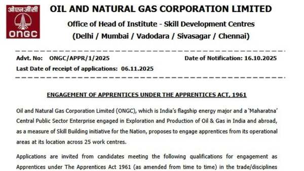 ONGC Recruitment 2025: 2623 Apprentice Posts Open, Selection Based On Merit, No Exam