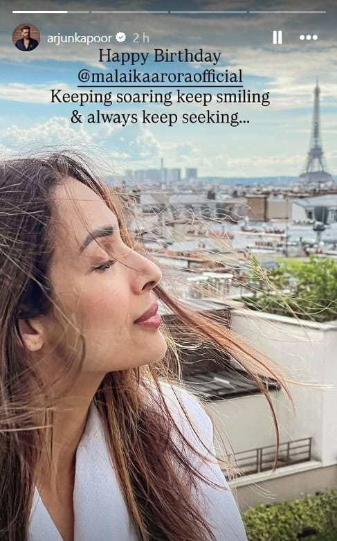 Arjun took to Instagram stories, where he shared a picture of the actress soaking in the sun in Paris with the iconic Eiffel Tower in the backdrop.
