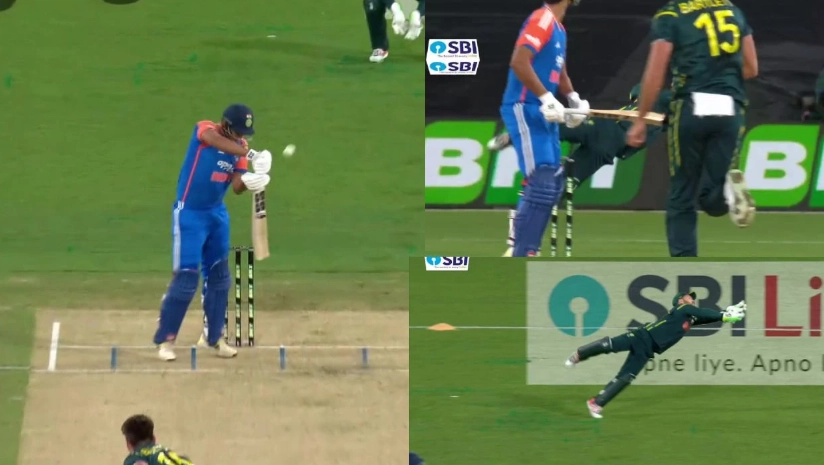 Josh Inglis grabs a stunning flying catch to remove Shivam Dube in Melbourne T20I