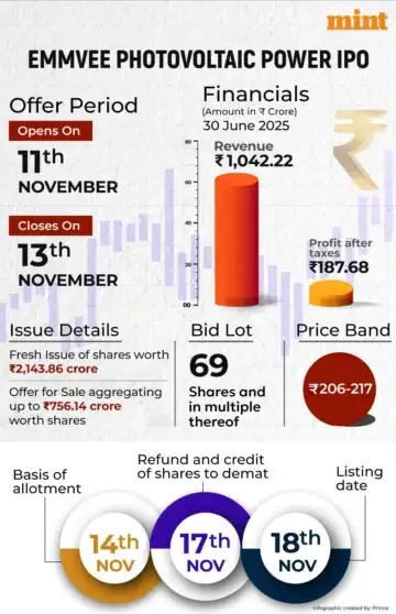 Emmvee Photovoltaic share price today will be available for trade from 10:00 IST.